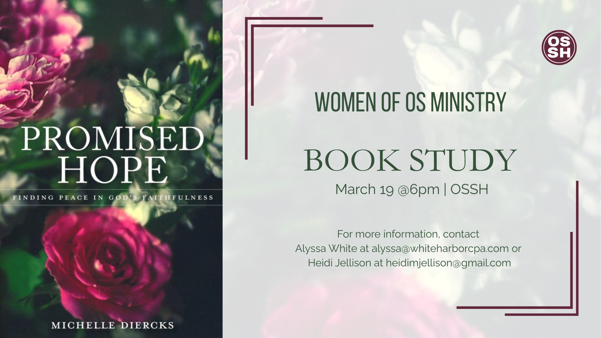 Join us for fellowship and the continuing study of the book Promised Hope. If you do not have the book and want to join, PLEASE DO!