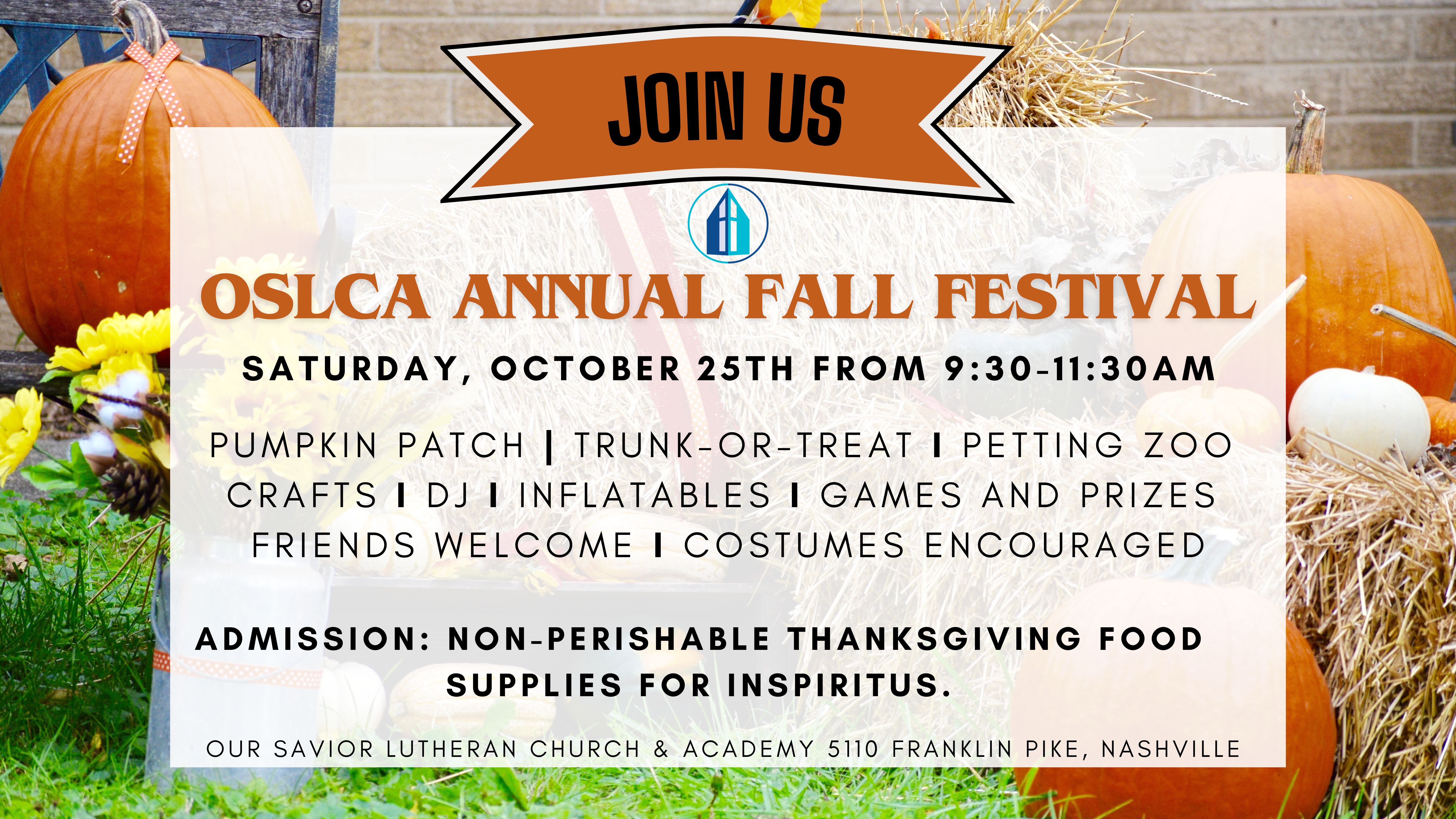 October 25 9:30 - 11:30 am | Our Savior Lutheran Church and Academy