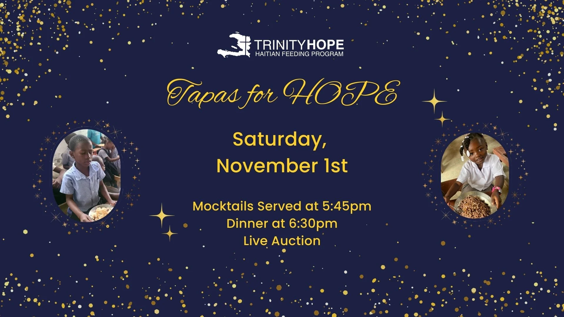 Please join Trinity HOPE for a fundraising event for the children of Haiti. Come for a delicious meal, a silent and live auction, and an evening of fellowship while an update on God’s amazing work in Haiti is shared.